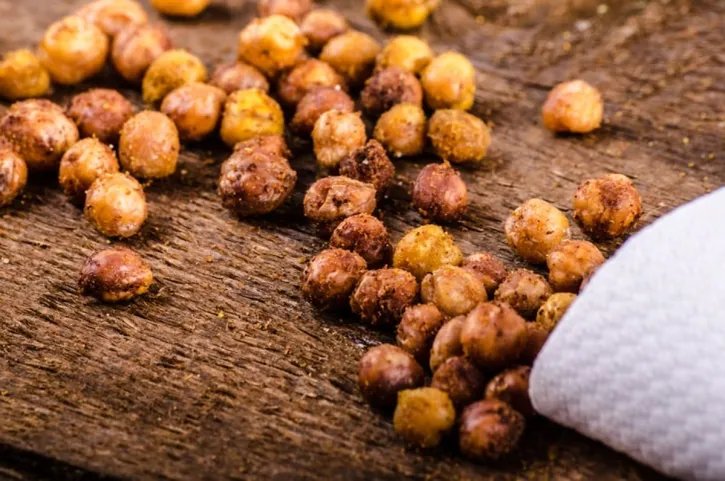 Az előző nap beáztatott csicseriborsót szárítsd meg, majd egy tapadásmentes serpenyőben 17 perc alatt süsd meg őket. Tedd át egy tálba majd ízesítsd őket a kedvenc fűszereiddel. Ha szereted a pikáns ízeket, próbáld ki parmezán sajttal, citromhéjjal és őrölt fokhagymával ízesíteni.