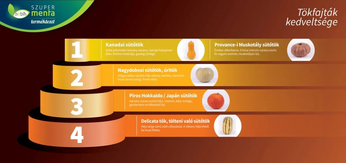 A kanadai sütőtökök értékelését követően a Szupermenta tesztcsapata arra kérte a résztvevőket, kóstoljanak meg és összbenyomás szerint értékeljenek öt kevésbé ismert, de szintén étkezési célra szánt tökfajtát. A tököket sült állapotban kóstolták és egyéni preferencia szerint sorrendet állítottak fel a kóstolók. Hogy melyek ezek a tökfajták és mit érdemes róluk tudni? Lássuk!