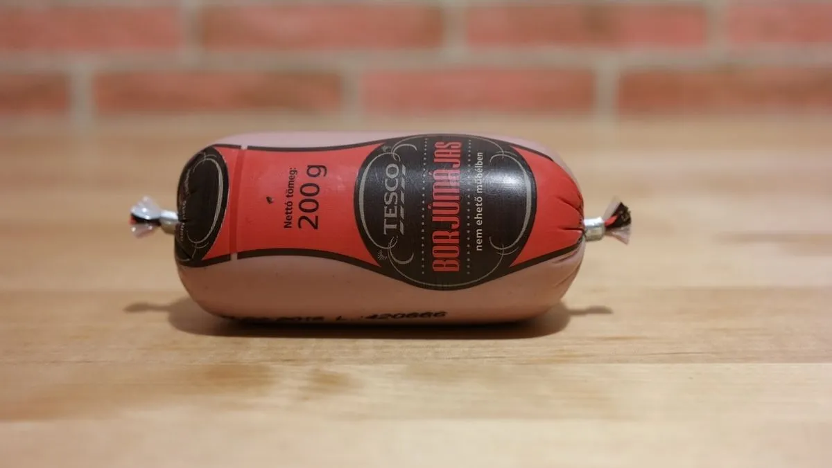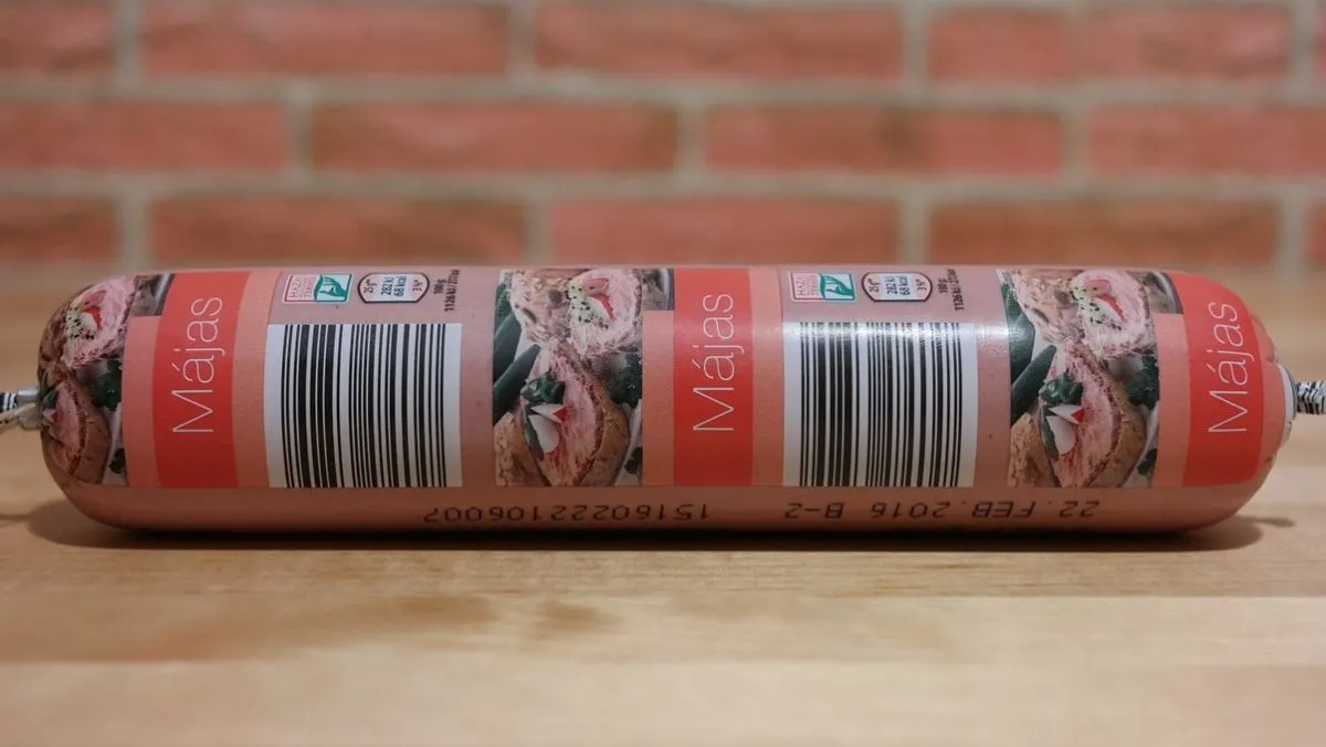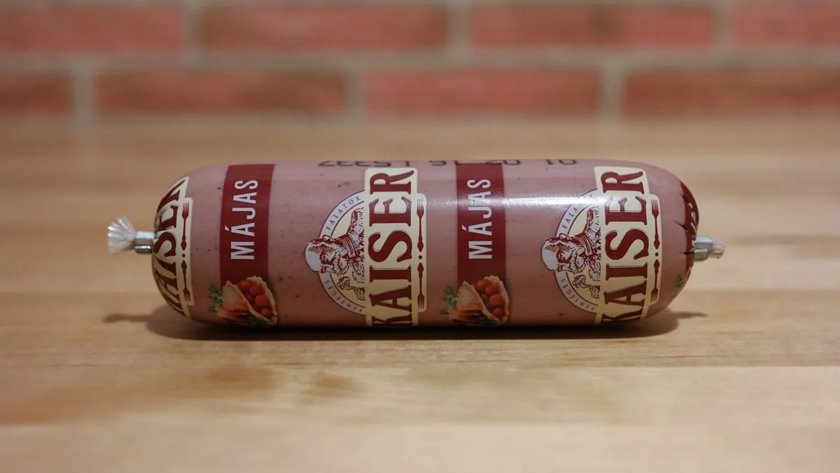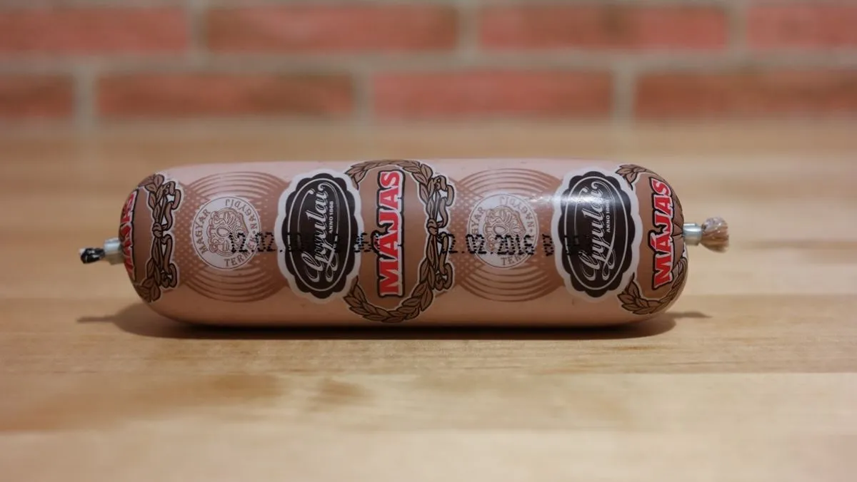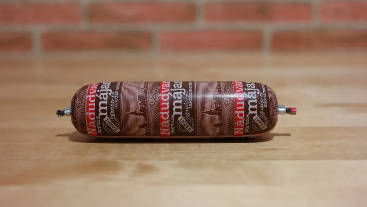 A gyulai kolbászok valahogy nagyobb népszerűségnek örvendenek, mint ez a májas, de lehet, csak idő kérdése és minden megváltozik. A csomagoláson sok említésre méltó elem nem kapott helyet, piros májas felirat, némi koszorúszerűség és ki is fújt. A kisbetűs részt szemlélve megtudjuk, hogy a lelkét 20% sertésmáj adja. A borjú után egy sertés, ami világosabb mindennél. A töltelékben találni pár apróbb légbuborékot, nem tudni, ez mennyire természetes jelenség, de ennyi izgalom kell egy teszt során. Illatra egészen semmilyen, leginkább a műanyag csomagolás szaga az, ami könyörtelenül átjárja orrunkat. Kóstolásnál inkább valamilyen szárnyasmájaroma ugrik be többeknél, de határozott típust senki nem tudott rávágni. Állagra egészen kemény, ezt picit hagyni kell lazulni, ha éppen a hűtőből kaptuk ki használat előtt.