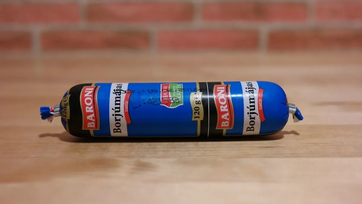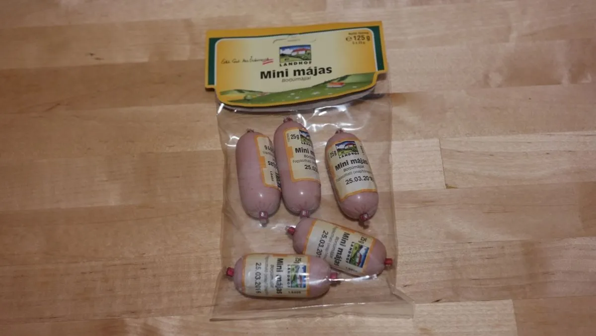 Az igazi emberverő kiszerelés, senki nem lenne tőle boldog, ha egy ilyennel suhintanák nyakon. Méretéből kifolyólag kapott egy madzagot is a nyakára, szóval akár úgy is fel lehet akasztani a spájzban, akár egy rúd szalámit vagy kolbászt. Az ALDI az őshazája és 21% sertésmájtartalma van. Egy gusztusos tálalási javaslat és méretes vonalkódok uralják az „elejét”, nincs túlgondolva, az biztos. Dohos műanyagszag üti meg az orrunkat, amikor a frissen kinyomott májashoz hajolunk. Sokadik tüdőzésre érkeződik egy halovány májas illat belőle, de nagyon csekély. Kóstolásnál kiderül, hogy nem akar olyan hirtelen olvadni a szánkban, megvárja, hogy aktivizálódjanak az összetevők és sikeresen elhitesse velünk, hogy valóban májasról van szó.