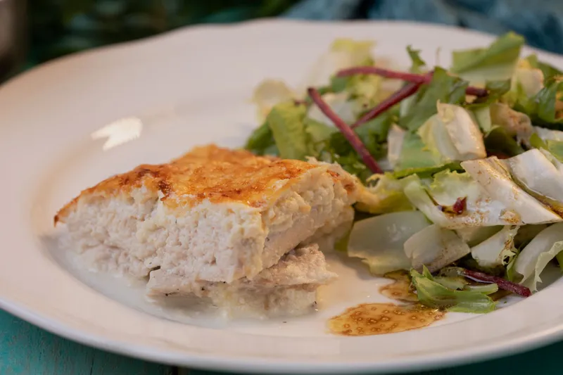 Szaftos csirkemell sonkával, spárgával és sajttal töltve